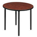 • HomeStock Antique Ambiance 30" Round Folding Breakroom Table with Cherry Top and Black Legs Durable Melamine Surface Space Saving One-Hand Adjustment image - 1