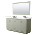 • HomeStock Antique Ambiance 66 Inch Double Bathroom Vanity in Light Green, Countertop, Undermount Square Sinks (3-Hole), Brushed Nickel Trim, 58 Inch Mirror image - 1