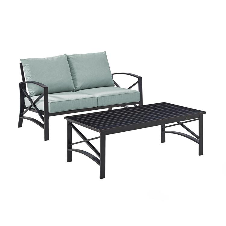 • 2-Piece Metal Outdoor Seating Set - Loveseat & Coffee Table - Bronze Finish with Cushions image - 1
