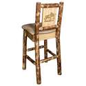 • HomeStock Art Deco Dreams Counter Height Barstool with Back 20"L x 19"W x 38"H Clear Lacquer Finish Laser Engraved Moose Design Solid Lodge Pole Pine Wood image - 1