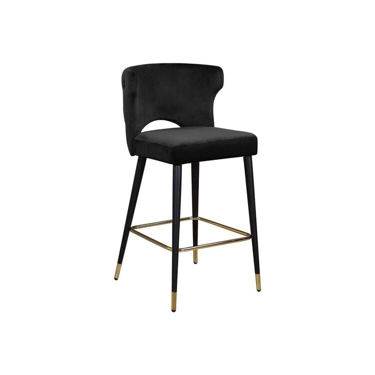 • Homestock Art Nouveau Allure Contemporary Velvet Upholstered Counter Height Stool with Gold Tipped, Black Metal Legs, 22" W x 19" D x 38.5" H, Set of 2 image - 1