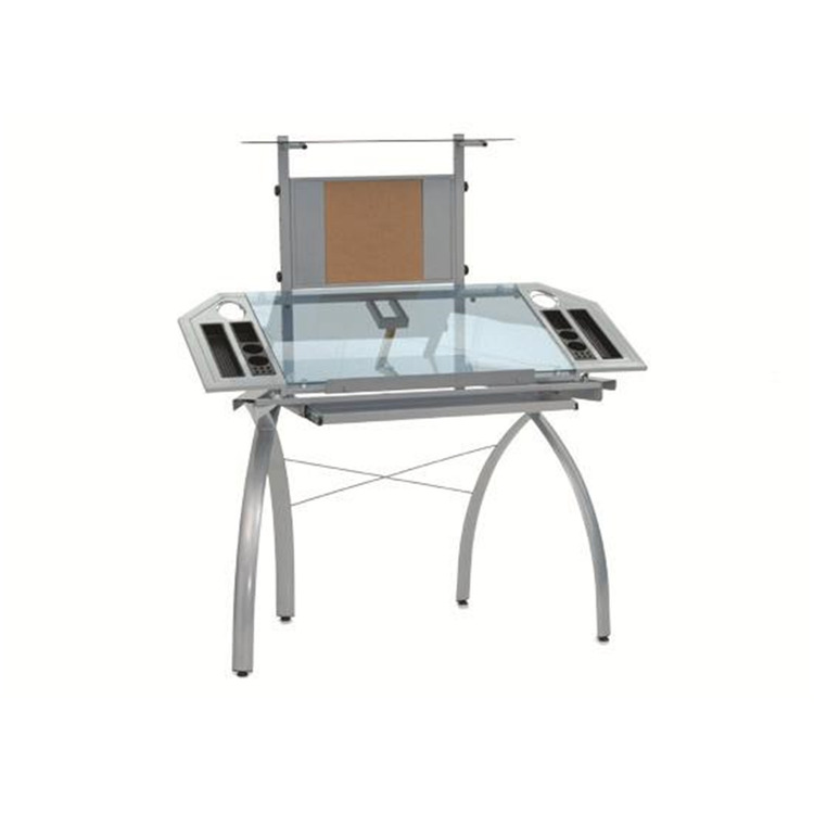 Homestock Art Nouveau Allure Tower - 29.5" L x 53.5" W x 5.5" H, Tempered Glass, Removable Art Trays, Silver/Blue Finish