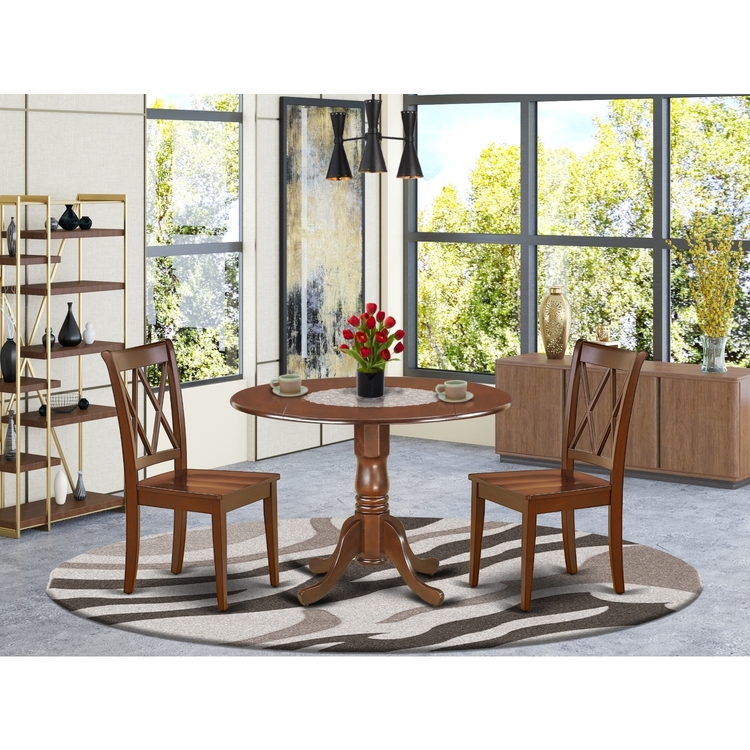 Round Dining Table Set for Small Spaces|3 Piece Kitchen Table with Chairs|42 Inch Mahogany Finish