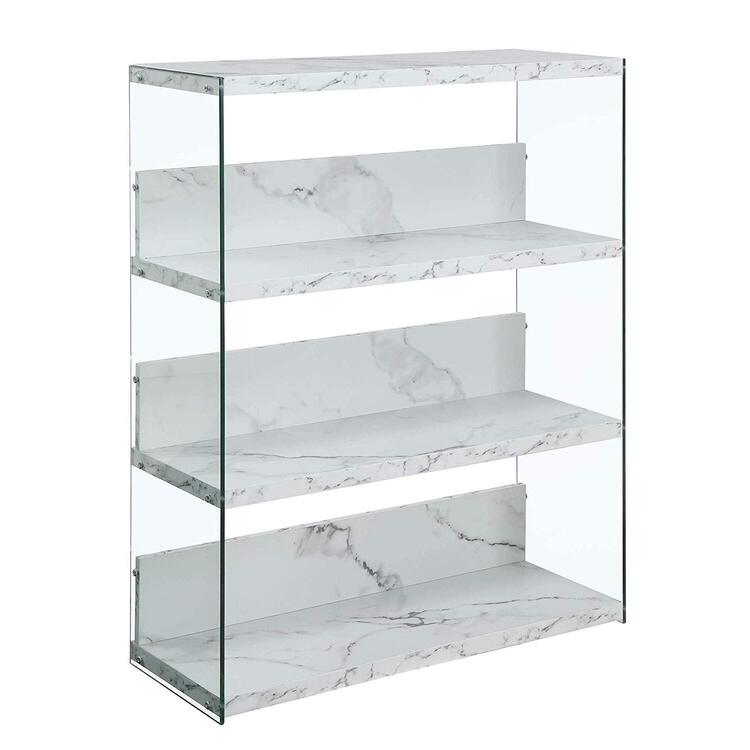 • HomeStock Artistic Accomplishment 4-Tier Bookcase, 31.5-In x 12-In x 40.75-In , White Faux Marble Finish, Spacious Open Shelves, Tempered Glass, Modern Look, Easy Assembly image - 1