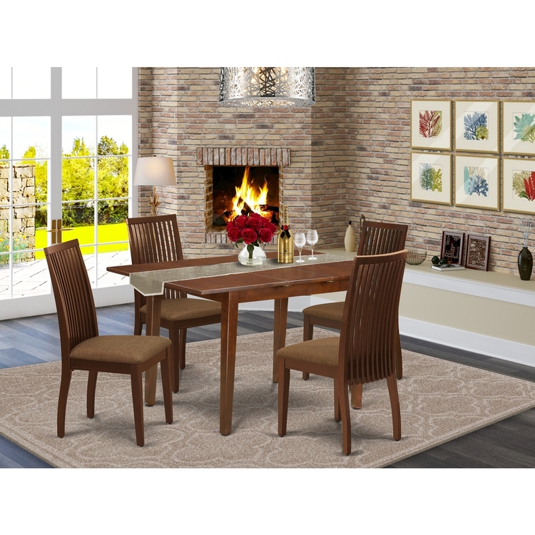 • Asian Dining Set 5pc - Rectangle Table & 4 Linen Chairs - Mahogany Finish image - 1