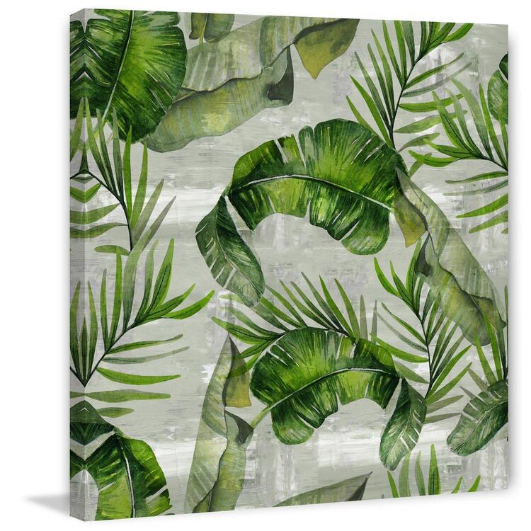 • Green Tropical Leaves Canvas Wall Art - Home Decor Prints, Modern Art, Gallery Wrapped Canvas, 12x12 Inch image - 1