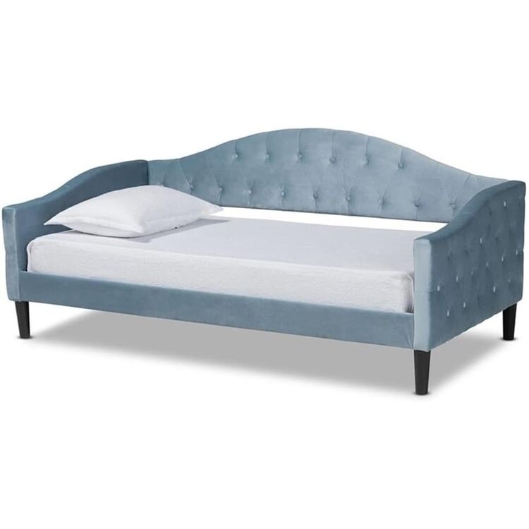 • Velvet Upholstered Full Size Daybed with Wood Frame - Light Blue image - 1