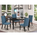 • 5-Piece Dinette Set - Kitchen Table with 4 Parsons Chairs - Modern Dining Room Furniture - Black & Blue Finish image - 1