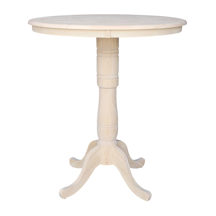• HomeStock Bohemian Bliss 36-In Round Pedestal Bar Table - Solid Parawood, 40.9-In Height for Bar Stools, Butcher Block Top, Pedestal Base for Maximum Support, Assembly Required image - 1