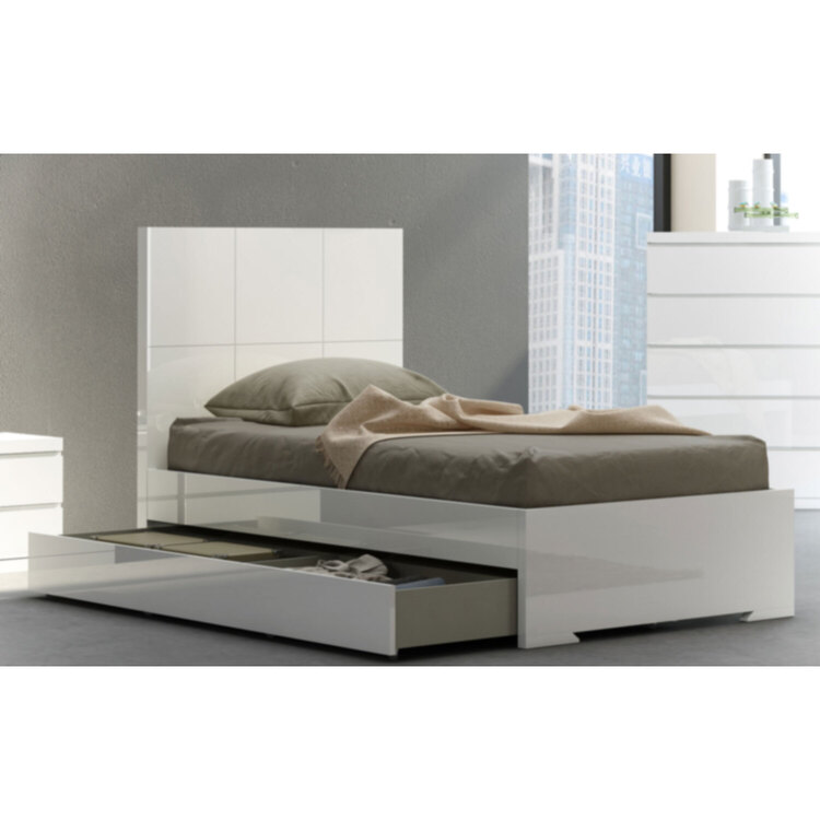 • HomeStock Bohemian Bliss Trundle Bed, Twin Size with Dividers for Storage, High Gloss White Finish, Opens Both Sides, 42" x 79" x 48" image - 1