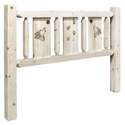 • HomeStock Boldly Bohemian California King Headboard with Laser Engraved Wolf Design Clear Lacquer Finish 5"L x 76"W x 47"H Solid Lodge Pole Pine Wood image - 1