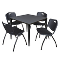 • HomeStock Charm 36" Square Breakroom Table Grey Top Black Base with 4 Black M Stack Chairs Scratch Stain Scald Resistant Durable Set image - 1
