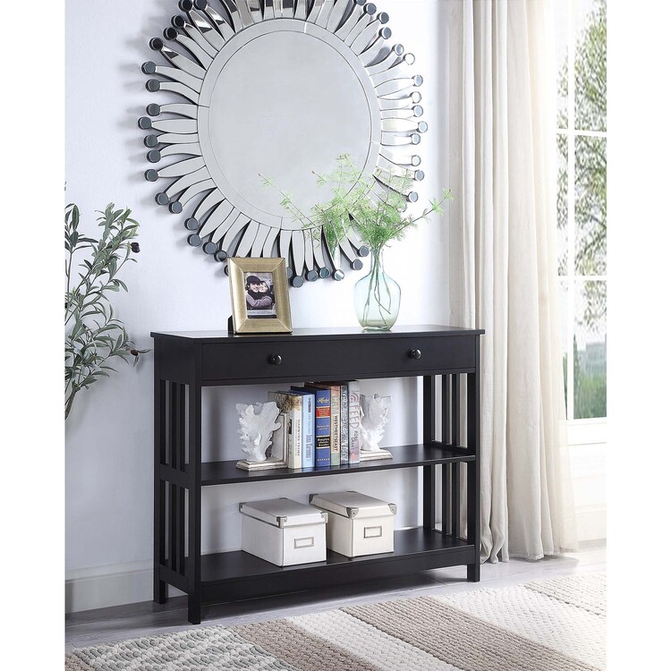 • HomeStock Coastal Charm 1-Drawer Console Table, Black, Sleek & Modern, Concealed Storage, Bottom Shelf, Wood Build, Ideal for Entryways or Living Spaces, Quick Assembly image - 1