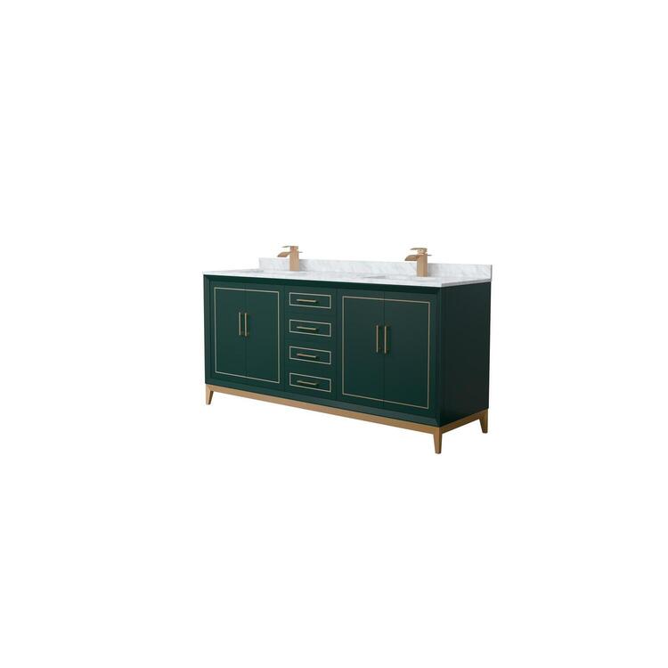 • 72" Double Vanity Green & White Marble Top - Satin Bronze Trim - Undermount Sinks image - 1
