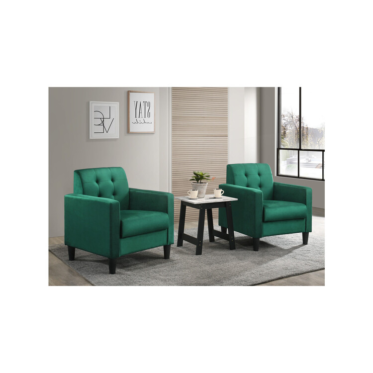 • Homestock Vintage Variety Green Velvet Armchairs and End Table Living Room Set image - 1