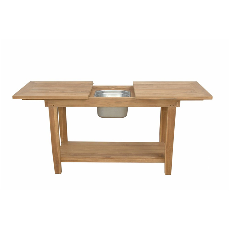 • Teak Console Table with Stainless Steel Container - Outdoor Entryway Table image - 1
