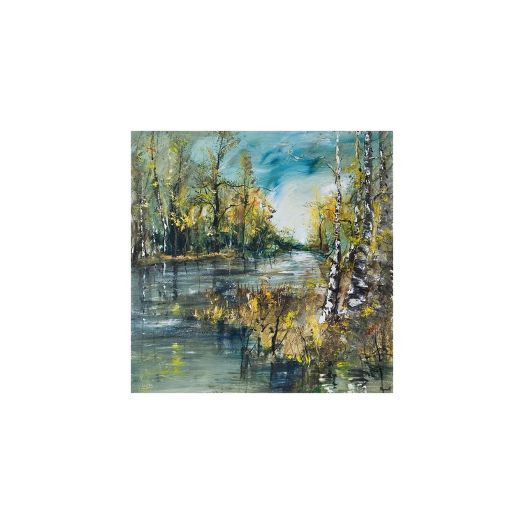 • HomeStock Coastal Cottage Listening to the River Painting Print on Wrapped Canvas, Wall Art, Canvas Print, Framed Prints, Wall Hanging Prints for Living Room - 12"L x 12"W image - 1
