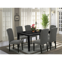 • Modern Dining Set 7 Piece - 60" Rectangle Table & 6 Dark Linen Chairs - Contemporary Design image - 1