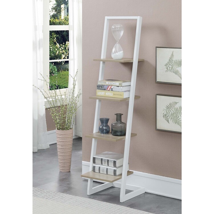 • HomeStock Cool 4-Tier Ladder Bookshelf, 19-In x 13.5-In x 56-In , Ice White/White Finish, Metal Frame, Open Storage, Modern Display Shelving, Space-Saving, Easy to Assemble image - 1