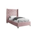 • Velvet Upholstered Bed, Gothic Style Platform Bed Frame, Solid Wood & Chrome Legs image - 1