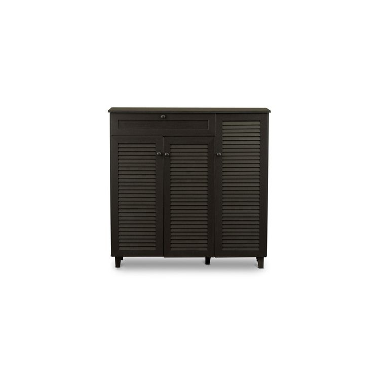 Shoe Cabinet with Doors & Drawer - Dark Brown Storage Organizer - MDF Wood Frame - 45.2" Tall Entryway Cabinet