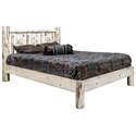 • HomeStock Earthy Elements Platform Bed 88"L x 66"W x 47"H with Laser Engraved Wolf Design Solid Lodge Pole Pine Wood Durable Build Heirloom Quality image - 1