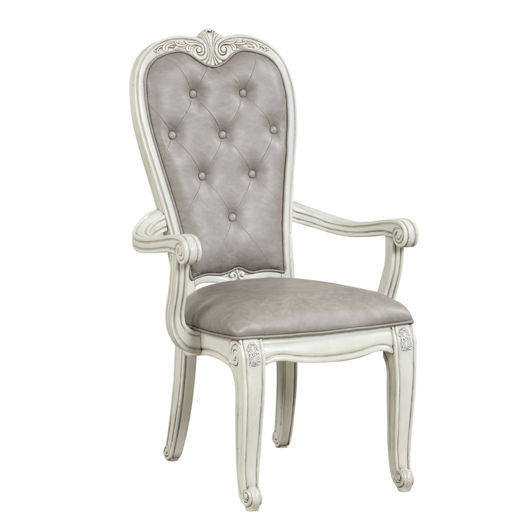 • HomeStock Eclectic Elegance 24.96 x 25.67 x 42.6 Inch Set of 2 Gray Tufted Vintage Dining Armchairs with Scrolled Frame and Turned Feet image - 1