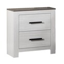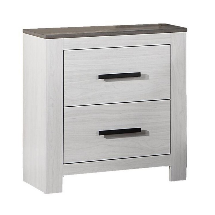 • HomeStock Eclectic Elegance 26 Inch Nightstand with 2 Drawers White Wood Finish Gray Top Black Bar Handles Glider Tracks Panel Legs image - 1