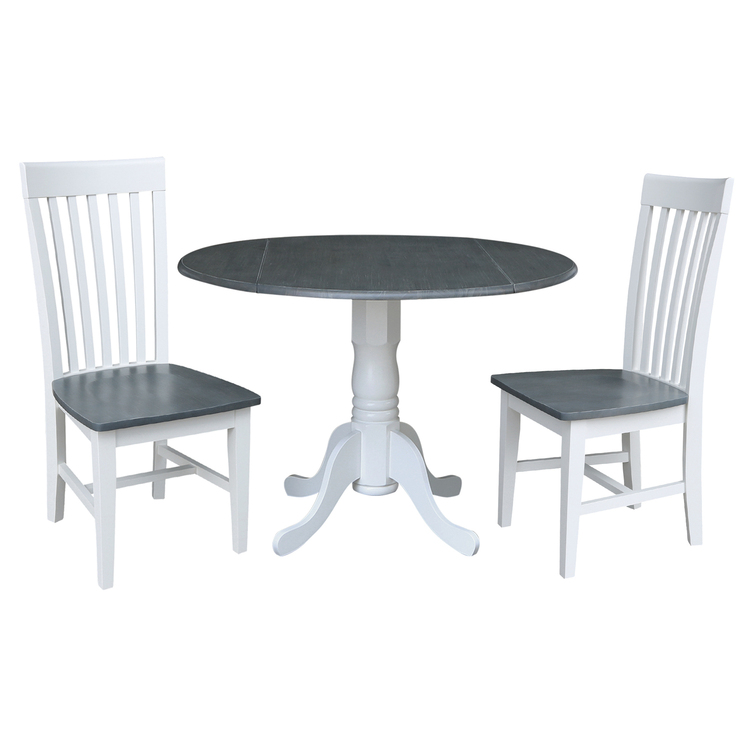 • HomeStock Eclectic Escape 42" Drop Leaf Dining Table With 2 Slat Back Chairs, Butcher Block Top, Pedestal Base And White Heather Gray Finish image - 1