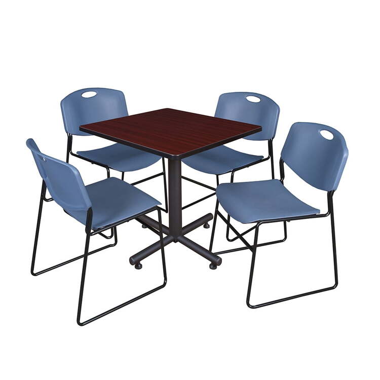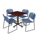 • HomeStock Eclectic Escape Square Breakroom Table in Mahogany with 4 Blue Stack Chairs Delivering Unique Elegance and Comfortable Seating for Break Areas image - 1
