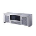 • HomeStock Eclectic Exclusivity 59 Inch Wood TV Entertainment Media Console, Faux Inlay, Silver - 59" x 16" x 22", Tempered Glass Front, Mirrored Frame image - 1
