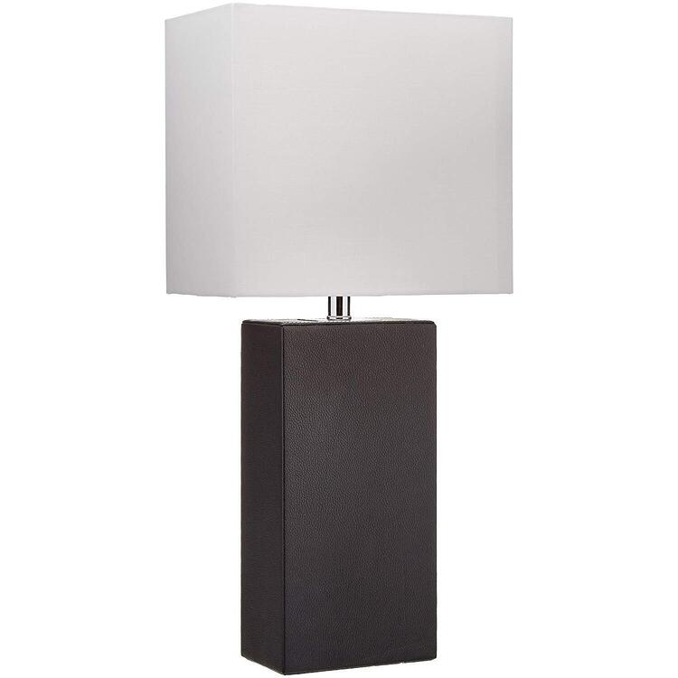 • HomeStock Eclectic Exclusivity Modern Leather Table Lamp - Black 7.5" x 12" - Genuine Leather with White Fabric Shade, 60W Bulb Not Included image - 1