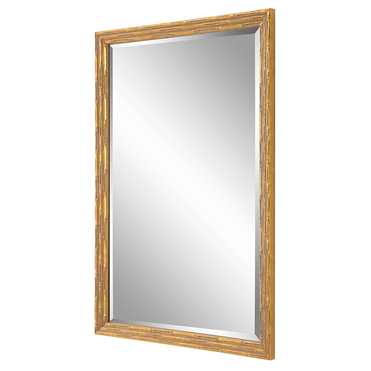 • HomeStock Elegance 1.13"x22"x34" Rectangular Wall Mirror, Bamboo Style Composite Wood Frame with Gold and Gray Finish, Beveled Edge Design image - 1