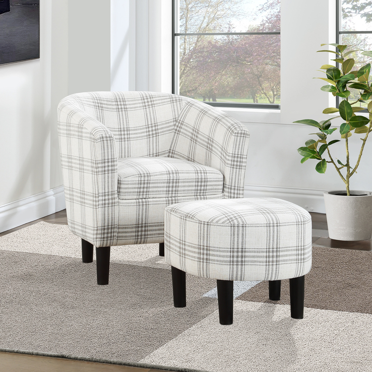 • HomeStock Elegance Accent Chair with Ottoman, Upholstered in Patterned Fabric, High-Density Foam Cushions, Easy 1-Step Assembly, Sturdy Wood Frame, Stylish Comfort image - 1