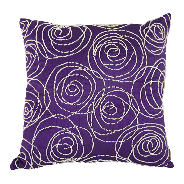 • HomeStock Elegance Faux Silk Cotton Pillow with Pearl Beads, Purple and Silver, 18" L x 18" W x 6.5" H, Features Spiral Pattern with Silver Pearl Beads for Cozy Decor image - 1