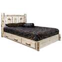• HomeStock Elegant Escape Platform Bed with Storage Full 83"L x 60"W x 47"H with Laser Engraved Bronc Design Ready to Finish Rustic Themed Lodge Pole Pine image - 1