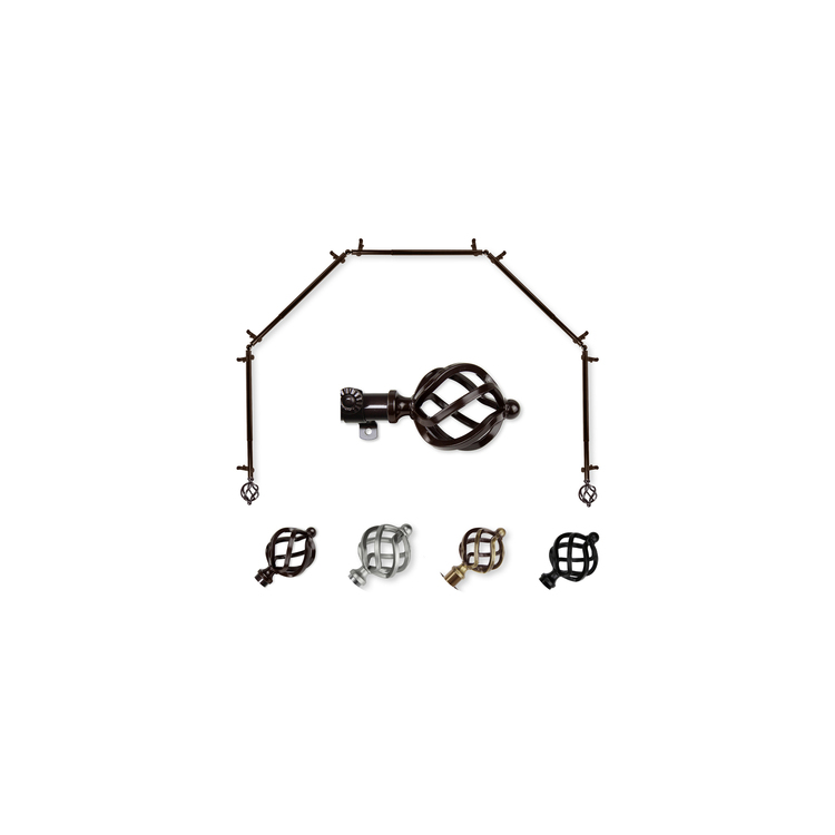 Bay Window Curtain Rod - 5 Sided Corner Rods - Cocoa Finish - Single Rod for Draperies