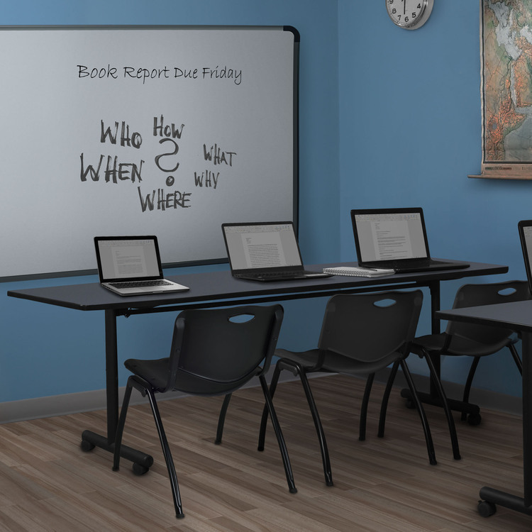 • HomeStock French Flair Flip Top Mobile Training Table in Grey with 3 Black 'M' Stack Chairs for Elegant and Versatile Training or Meeting Room Use image - 1