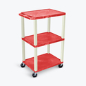 • HomeStock Fresh 3-Shelf Utility Cart - Heavy-Duty Recycled Plastic, Red Shelves, Putty Legs, Electric with 3-Outlet Power Strip, 4-In Swivel Lockable Casters, 300 lb Load Capacity image - 1