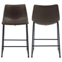 • Counter Height Stools Set of 2 - Brown Leatherette Upholstery & Black Metal Base image - 1