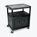 • HomeStock Gothic Glamour AV Cart - 3 Spacious Shelves, Locking Steel Cabinet, Built-In Power Strip, Heavy-Duty Casters, Ergonomic Push Handle, 400 lb Capacity, Black, 24-InW x 18-InD x 48-InH image - 1