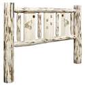 • HomeStock Gothic Grace Twin Headboard with Laser Engraved Wolf Design Clear Lacquer Finish Rustic Themed Laser Engraved Wolf Motif 6"L x 46"W x 47"H image - 1