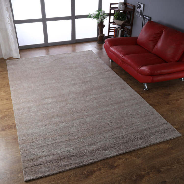 • HomeStock Hand Knotted Loom Silk Mix 3'x3' Area Rugs Solid Beige image - 1