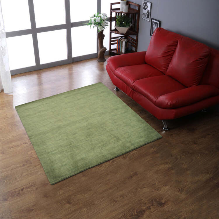 • HomeStock Hand Knotted Loom Wool 10'x10' Square Area Rug Solid Green image - 1
