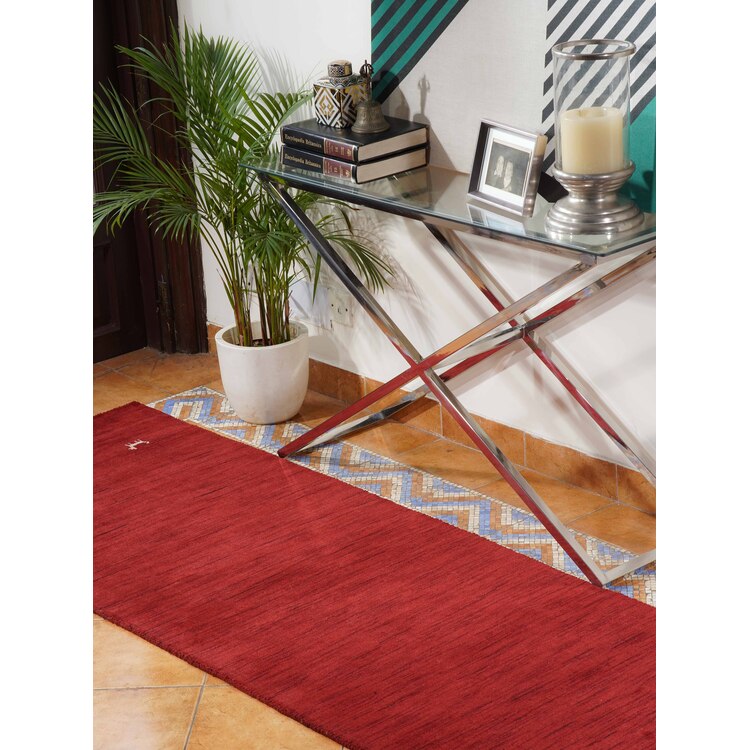 HomeStock Hand Knotted Loom Wool 2'6''x10' Runner Area Rug Contemporary Red
