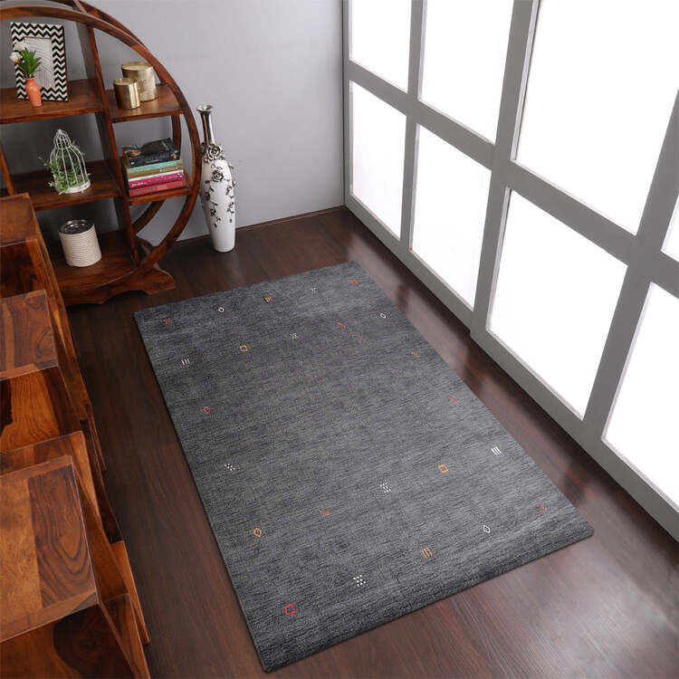 • HomeStock Hand Knotted Loom Wool 9'x12' Area Rug Contemporary Charcoal image - 1