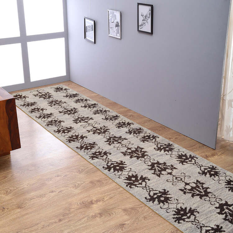 HomeStock Hand Knotted Wool 2'6''x10' Runner Area Rug Floral Brown