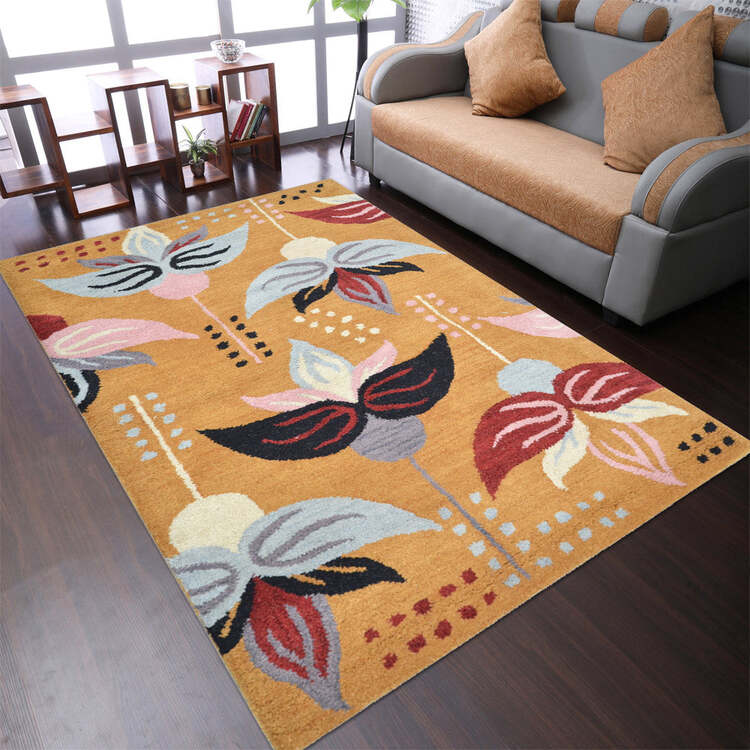 • HomeStock Hand Tufted Wool 8'x11' Area Rug Floral Gold image - 1
