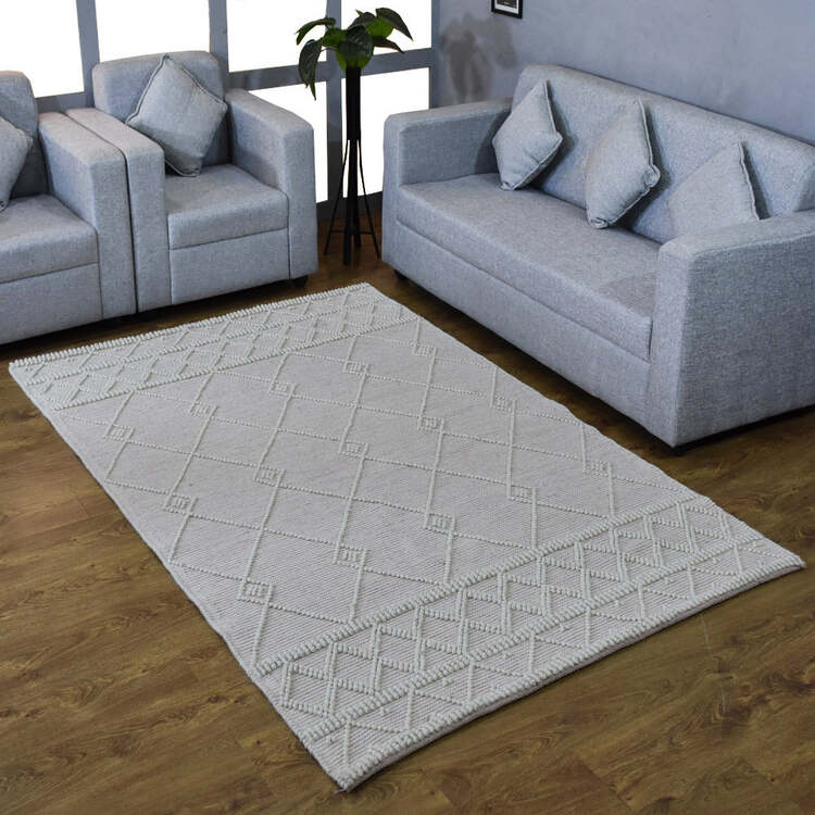HomeStock Hand Woven Flat Weave Loop Kilim Wool & Cotton 5'x7'6'' Area Rug Contemporary White Pink