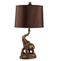 Homestock Handcrafted Haven Elegant 27" Bronze Elephant Table Lamp With Metallic Bronze Linen Shade For Sophisticated Style - 13.5" Diameter Shade, 9.5"H, 6 Lbs